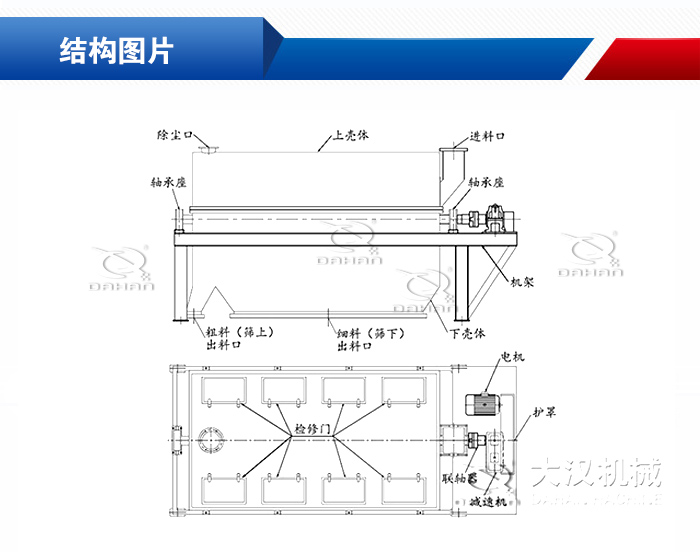 6、設備噪音低:整個篩分機構設計在密封隔離罩里,使噪音無法傳遞到外部,從而降低了設備噪音。