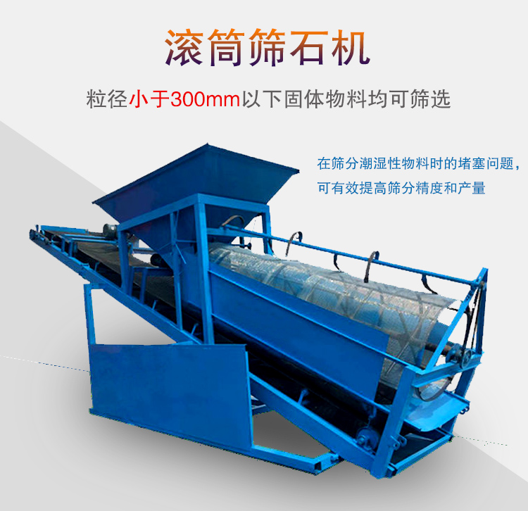 滾筒篩石機主要是針對砂石料場、礦山、冶金、建材、公路、鐵路、水利、化工等多個行業中大塊狀物料的大小等級,粒徑小于300mm以下固體物料均可篩選。滾筒篩石機克服了振動篩在篩分潮濕性物料時的堵塞問題,可有效提高篩分精度和產量。