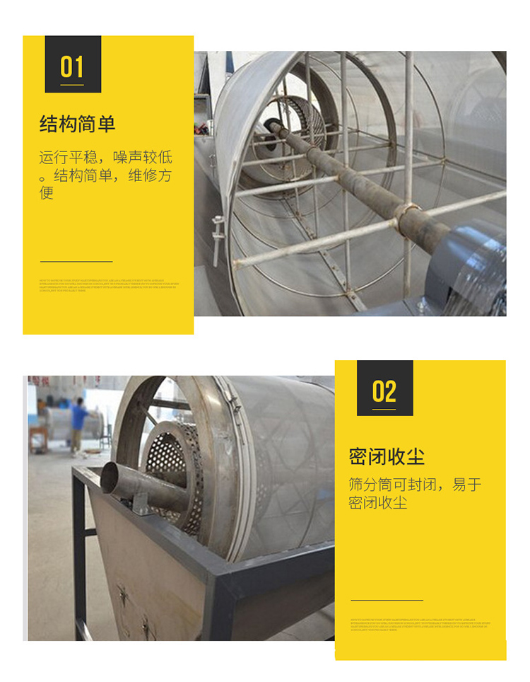 2、篩筒內設置有自清掃裝置,篩孔不易堵塞。