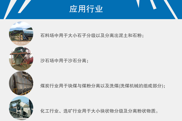煤炭行業(yè)用于塊煤與煤粉分離以及洗煤(洗煤機(jī)械的組成部分);