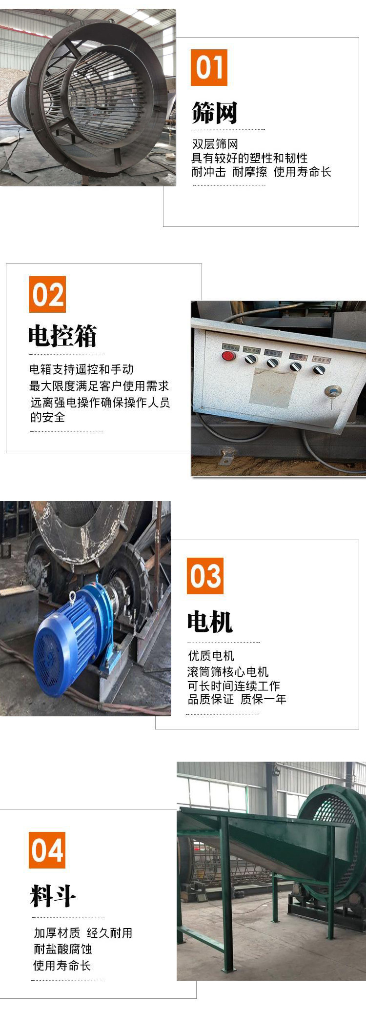 2、滾筒篩分原理,物料伴隨著不停的翻轉滾筒來完成篩分的同時,還可以防止堵網,提高篩分效率。