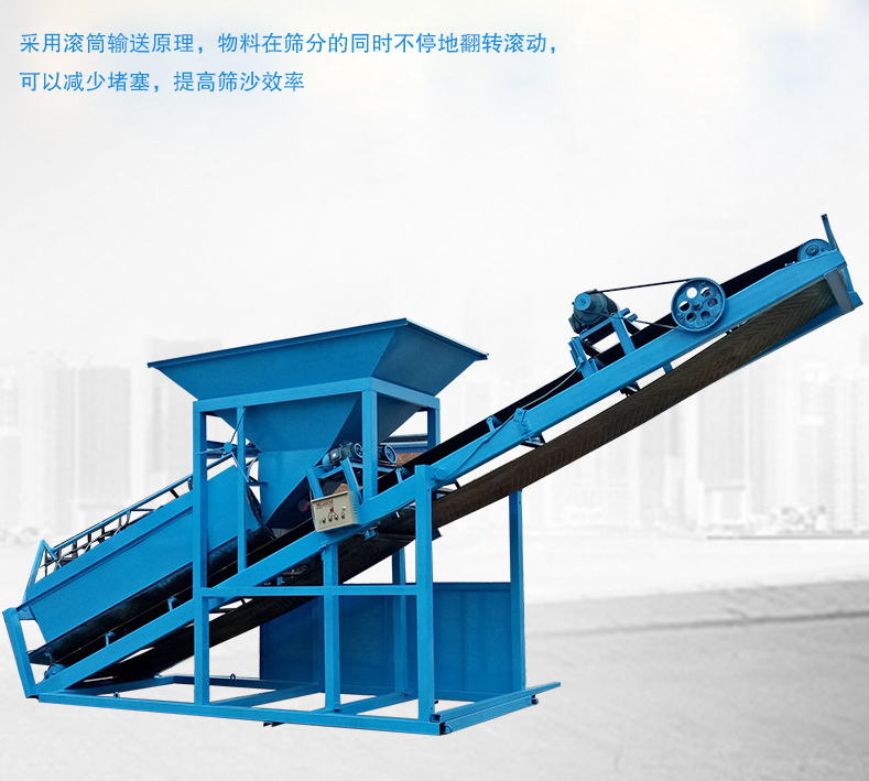 1、采用滾筒輸送原理,物料在篩分的同時不停地翻轉滾動,可以減少堵塞,提高篩沙效率。