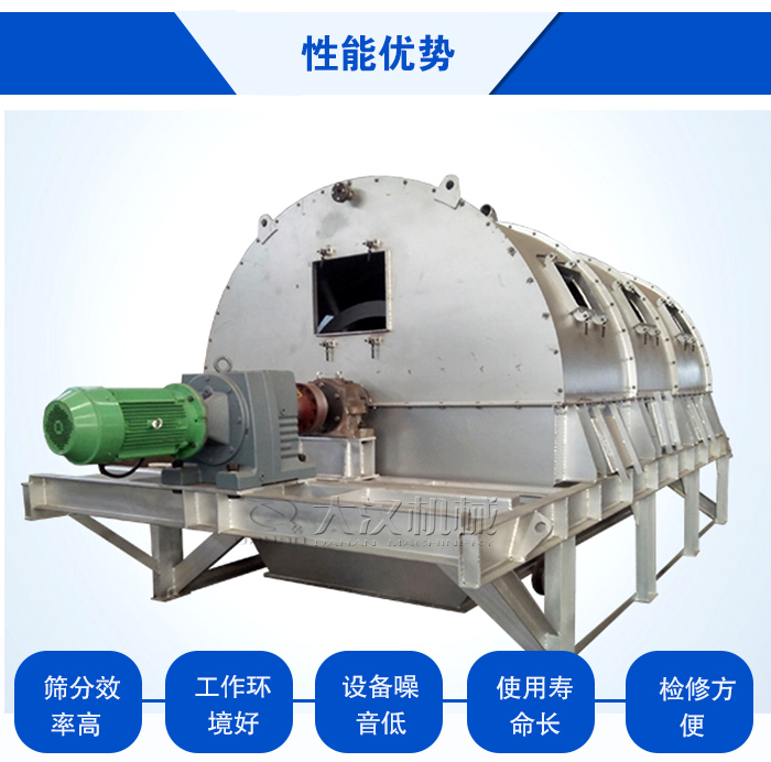 整個篩分機構均設計在密封防塵罩內,消除了篩分過程中的粉塵飛揚現象,從而改善了工作環境。